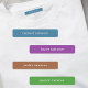 Keep your items from getting lost with iron-on clothing labels that permanently adhere to any fabric that can be ironed and are waterproof and weatherproof, throw them in the washing machine and dryer over and over. Easily apply to all clothes with your iron and included silicone sheets. **UP TO 4 NAMES, 2 sheets of 48 labels measuring 1.75" x 0.3125". Great for babies, kids and adults. School uniforms, work uniforms, clothes for camp, that go in the diaper bag, the caregiver's, any clothes that leave the house so you can always ensure a safe return. Change the colors and the font with our edit tools. You can also choose from different shapes and sizes and from adhesive, iron-on and clothing labels.