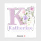Personalise any item with a Name and Initial with Floral Design Cut-Out Sticker. Example name is Katherine.