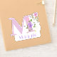 Personalise any item with a Name and Initial with Floral Design Cut-Out Sticker. Example name is Maggie.