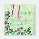 Pretty green and pink floral magnet with the name Hannah, meaning favour and grace.