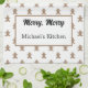 A cute tan and white gingerbread man pattern with a bold "Merry, Merry" and personalization are featured on this holiday kitchen towel. Easily change text to make it yours using the Template provided. This large 16"x24" towel is 80% durable woven polyester/ 20% polyamide blend microfiber. Great for drying and machine washable. Made to last a lifetime. See "About This Product" for additional information.