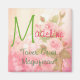 Pretty girl's name Madeline, meaning "Tower, Great, Magnificent." Pretty pink floral roses. pink and sage green.