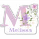 Name Melissa plus Initial with Floral Design Sticker