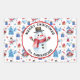 Classic retro snowman in a top hat in the center with red, gold and blue background pattern decorate these holiday rectangle stickers. Printed in vibrant full color on glossy paper; matte is also available for an upcharge. Easily change text using the Template provided. Four 4.5"x2.7" rectangle or oval stickers per sheet. See "About This Product" at side for more information.