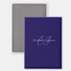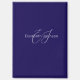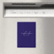 the front design shows name monogram in white calligraphy and typography with blue background.