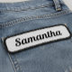 I bought this for my daughter's backpack. It has adhesive, but I added more fabric glue later on because the adhesive gave out after a while. Maybe my daughter pulled on it, she's a kid after all. The print is crisp and beautiful. Clearly legible name tag.
