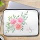 This monogrammed laptop sleeve is decorated with watercolor flowers and foliage in shades of pink, coral, and green.