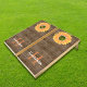 Enjoy playing with this country-themed yellow and barn wood cornhole set!