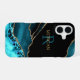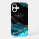 Name & Monogram Teal Black Agate, Gold DkTeal Text iPhone Case