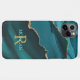 Name & Monogram, Teal Black Agate, Gold Teal Text iPhone Case