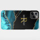 Name & Monogram, Teal Black Agate, Gold White Text iPhone Case