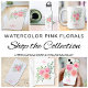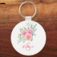 This pretty keychain is decorated with a watercolor bouquet of roses and foliage in shades of pink, coral, and green.