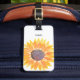 This floral luggage tag is decorated with a yellow watercolor sunflower.