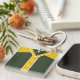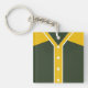 Easy to edit baseball / softball jersey keychain, just use the boxes to the right of the image to insert your own choice of name and number on the back. The design of this jersey has gold shoulders and neckline with white trim. The background color can be edited, just click on CUSTOMIZE.