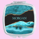 Name or Monogram, Black, Gold & Teal Agate Compact Mirror