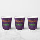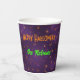 Orange and purple creepy spiders on a dark bokeh background, Happy Halloween greeting in orange and family or personal name in neon green decorate this cute Halloween party paper cup. Easily change the name using the Template provided. Dimensions are 3.75"h x 3"d. The cup is 8oz capacity and ideal for cold and warm beverages. Add a lid for a small charge. See "About This Product" at side for more information. Printed in USA.