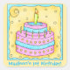 Personalize this happy birthday sticker for a first 1st birthday birthday or any birthday for a girl. The birthday girl's name and "1st birthday" words are below the whimsy and cute birthday cake art. This art features a pink and turquoise blue birthday cake with a green candle and is surrounded by a whimsy turquoise blue border. The background of the sticker is yellow and has whimsy circles. Fully customizable and coordinates with invitations, postage stamps and more for a coordinated party them. This original art is by Phyllis Dobbs.
