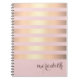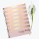 Name Personalized Pink/Gold Metallic Striped Notebook. Customized notebook/journal with a pretty faux metallic striped design and modern typography. Your name and choice of fonts can be easily inserted by using Zazzle's design tool.