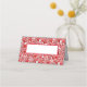This folded name place card is shown in basic white with a festive holiday Christmas candy print.