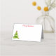This folded name place card is shown in basic white with a festive holiday Christmas tree print.