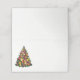 This folded name place card is shown in basic white with a festive holiday Christmas tree print.