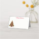 This folded name place card is shown in basic white with a festive holiday Christmas tree print.