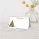This folded name place card is shown in basic white with a festive holiday Christmas tree print.
