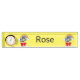 The product was just like it was in the pics, everyone at work loves it! Came on time and it was neatly packed. Bold and Clear. My name can be seen from far and it matches in color.