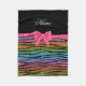 Name rainbow glitter zebra stripes pink bow fleece blanket
