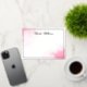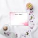 Elegant note cards featuring your name, monogram initials or other custom text in a romantic calligraphy script font on pink watercolor paint splashes. Real foil (silver, gold or rose gold).