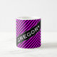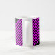This mug design features a simple pattern of alternating black and fuchsia lines/stripes. It also features a custom name in white colored text within a dark colored area, with both at an angle. [~Z0000051]