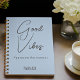 This simple yet modern 'Good Vibes' spiral notebook design features a stylish script font in dark grey, inspiring quote and name or monogram initials. Background is a light Carolina blue color. Easily change add or remove text and name to make it yours using the Template provided. This 6.5"x 8.75" spiral notebook, contains 80 pages college lined in black. See "About This Product" for more information.