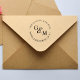 Modern return address stamp featuring your name in a stylish script and your address in simple typography. Save time and effort by effortlessly personalizing your return address. Perfect for wedding invitations, party announcements, everyday correspondence and business mailings.
