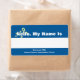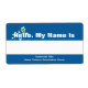 Custom name tags with yellow flower on blue background. White strip to write names. Change bottom text to show name of your group and event.