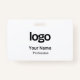 Easily personalize these simple business Name Tags Badges with employee name and business logo. A simple business design in gray and white colors fully customizable in front and back sizes, sans-serif basic and modern fonts and a professional and clear look. These standard security id name tags badges are avaiable with lanyard, metal clip or with retractable. You can personalize your id badge cards choosing any background color and any font style with Graphic Design editor by clicking on customize further. No minimum order.