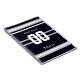 Black, white, and grey. Personalized with name,#, team, sports fan Team notebook. Design by Sandy Closs.
