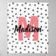Personalized name with monogram typography art print poster. Pink, black and white. Great for triangle nursery decor.
