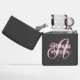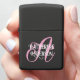 A custom name in white with a pink monogram. You could use either initial letter for the monogram depending on what you prefer.