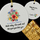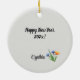 Ideal for tying on a package for decoration. Give an elegant Happy New Year ornament that can be displayed year-round. A bright watercolor floral bouquet and new year text decorate this round, white ceramic ornament. The background is a platinum color. Easily change text and name on back using the Template provided. See "About This Product" at side for more information.