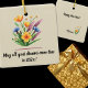 Ideal for tying on a package for decoration. Give an elegant Happy New Year ornament to display year-round. A bright watercolor floral bouquet and new year text decorate this square, white ceramic ornament. The background is a pearl color. Easily change text front & back and name on back using the Template provided. See "About This Product" at side for more information.