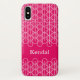 A red pink white oval and line art patterned iphone case. Personalize this item with your own name. Original pattern and design by Sarah Trett for www.mylittleeden.com on zazzle.
