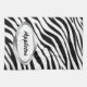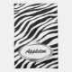 An stylish zebra print kitchen towel in black & white with a silver-design nameplate, personalized with your name or text. (The nameplate is a printed illustration. Not reflective or real silver.)