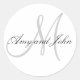 By Elke Clarke©2009. More designs at WhiteWhimsicalWeddings.com and WhiteWhimsicalWeddings.blogspot.com. The design is simple yet classic and fits with any invitation and wedding theme. THE MONOGRAM GALLERY allows you to customize the names, monogram and colors of this sticker. Just click on the "CUSTOMIZE" button and follow the prompts.