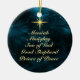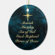 This Christmas ornament features the Star of Bethlehem and the Names of Jesus on a unique blue abstract starry background. The back of the ornament can be personalized with the details of your choice.