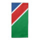 The design on this napkin is the flag of Namibia carefully conformed to the square shape. The perfect place setting when serving Namibian cuisine.