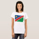 The front of this t-shirt boldly displays the Namibian flag with its distinctive yellow sun on blue triangle, fimbriated red diagonal and green triangle. This is matched at the back by an attractive map of Namibia.