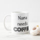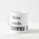 "Nana needs Coffee" printed on both sides. White mug with black letters.