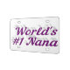 License plate with world's #1 nana in dark violet 3D text. Great for a birthday gift. Available in plastic or aluminum.