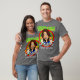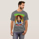 My 11 yo wore adult XL (5’7” 165#). The 8yo is small framed. She wore adult small and tied it in the back. Grandma wore adult large with long sleeve shirt underneath. Tall girl adult medium. Dark haired male adult large. Good quality dark Heather gray, Gildan brand shirt. -it was next up from basic choice and cost about $20 per shirt. Not too thick or thin. Washed and dried well, no major shrinkage. Not see-through. Can wear a bra under it fine. Screen print is just as shown and well done, front and back.