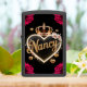 A golden heart with the name Nancy written in cursive, adorned with a crown and roses.